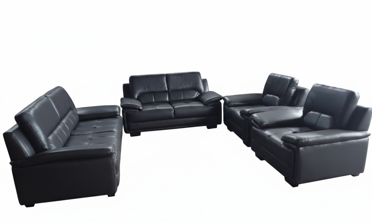 Cet ensemble de salon en cuir noir présente un design moderne et élégant, composé généralement d'un canapé 3 places, d'un canapé 2 places et deux fauteuils assortis. Caractéristiques Principales Matériau : Revêtement en cuir de haute qualité, offrant durabilité et un toucher luxueux. Confort : Les assises sont généralement garnies de mousse de polyuréthane haute densité 35 kg/m³ pour un soutien optimal. Design : Style intemporel avec des accoudoirs rembourrés pour un confort personnalisé.